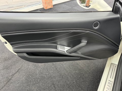 This Ferrari California T is presented in a striking Bianco Italia special paint finish, beautifully contrasted by a two-tone Nero DS livery and 20-inch forged diamond alloy wheels. Subtle yet unmistakable Ferrari details include Scuderia Ferrari shields and a white rev counter, all carefully selected to elevate the car’s visual presence.